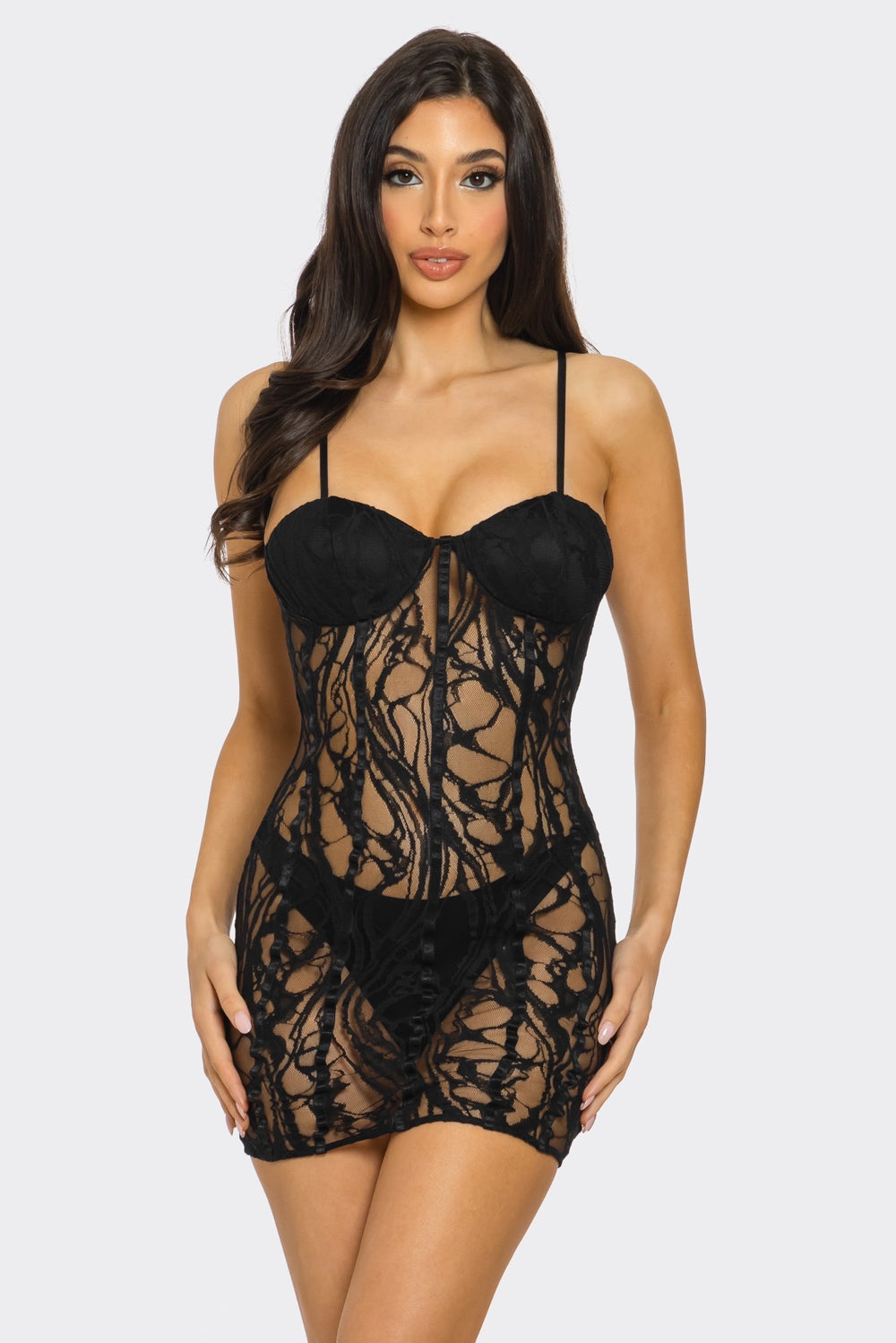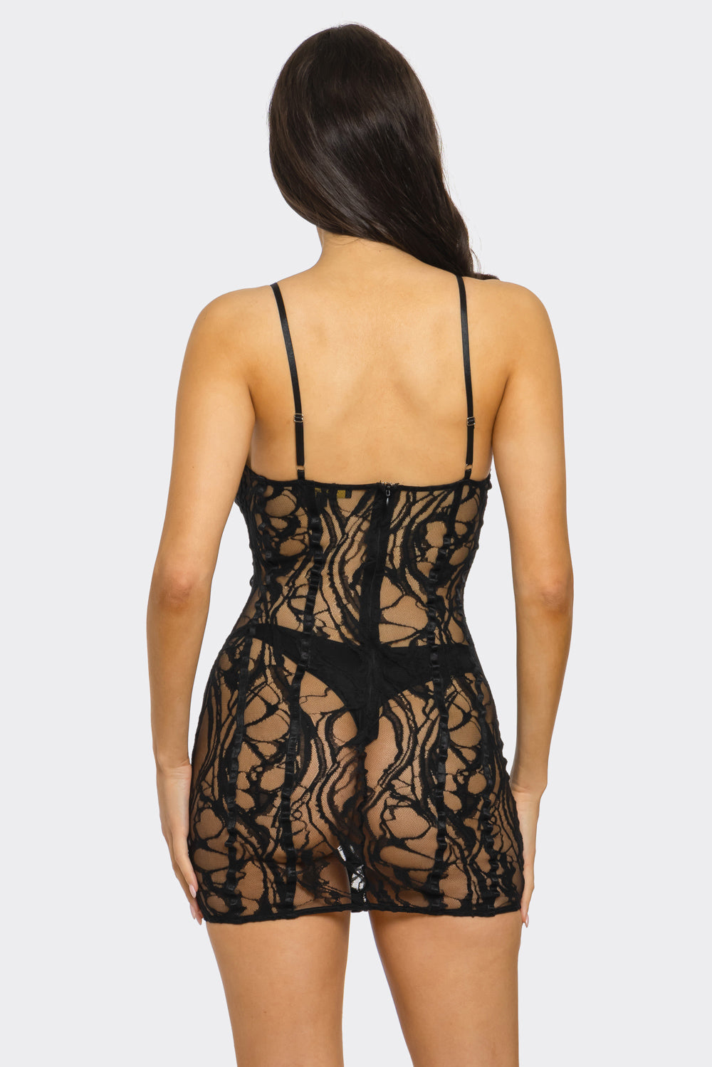 Sweetheart Lace Embellished Lingerie Mini Dress