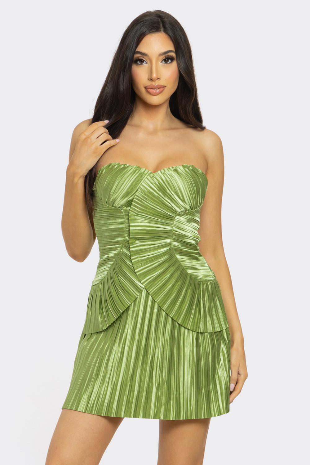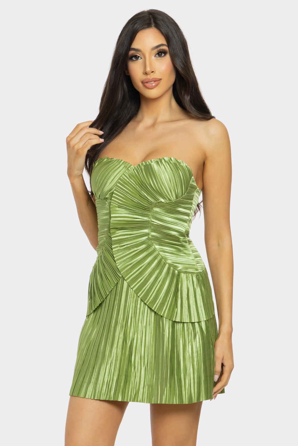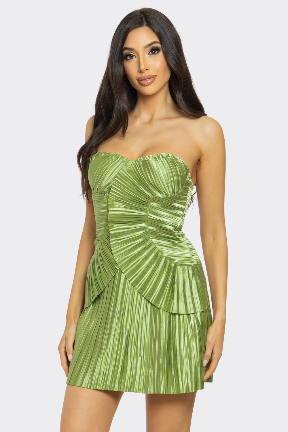 Allover Pleated Shell Strapless Mini Dress