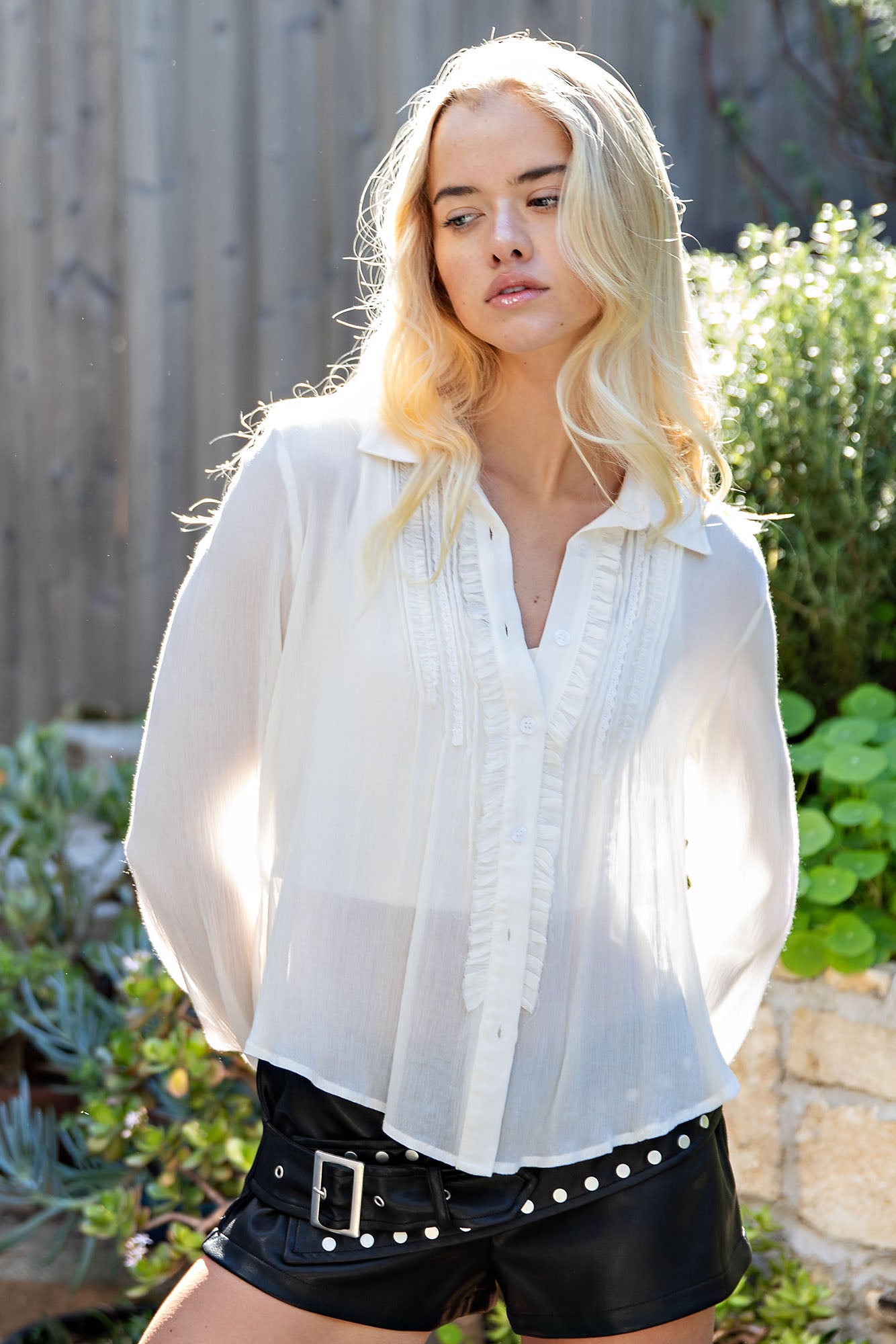 Edgy short shorts crafted in vegan PU leather featuring an integrated cross-studded belt detail with buckle accent. The contemporary design includes a side zipper closure for a sleek, fitted silhouette. Perfect for night out, concerts, festivals, club wear, and casual outings.