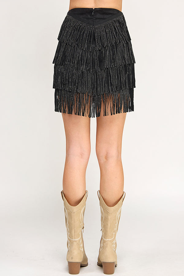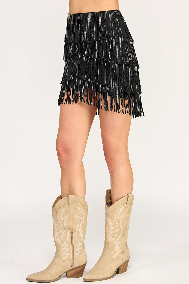Studded Chevron Tiered Fringe Elm Mini Skirt