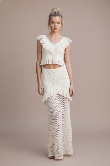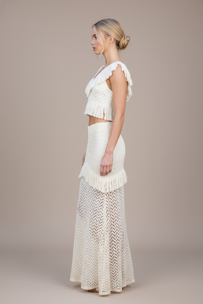 Crochet Fringe Crop Top & Maxi Skirt Set