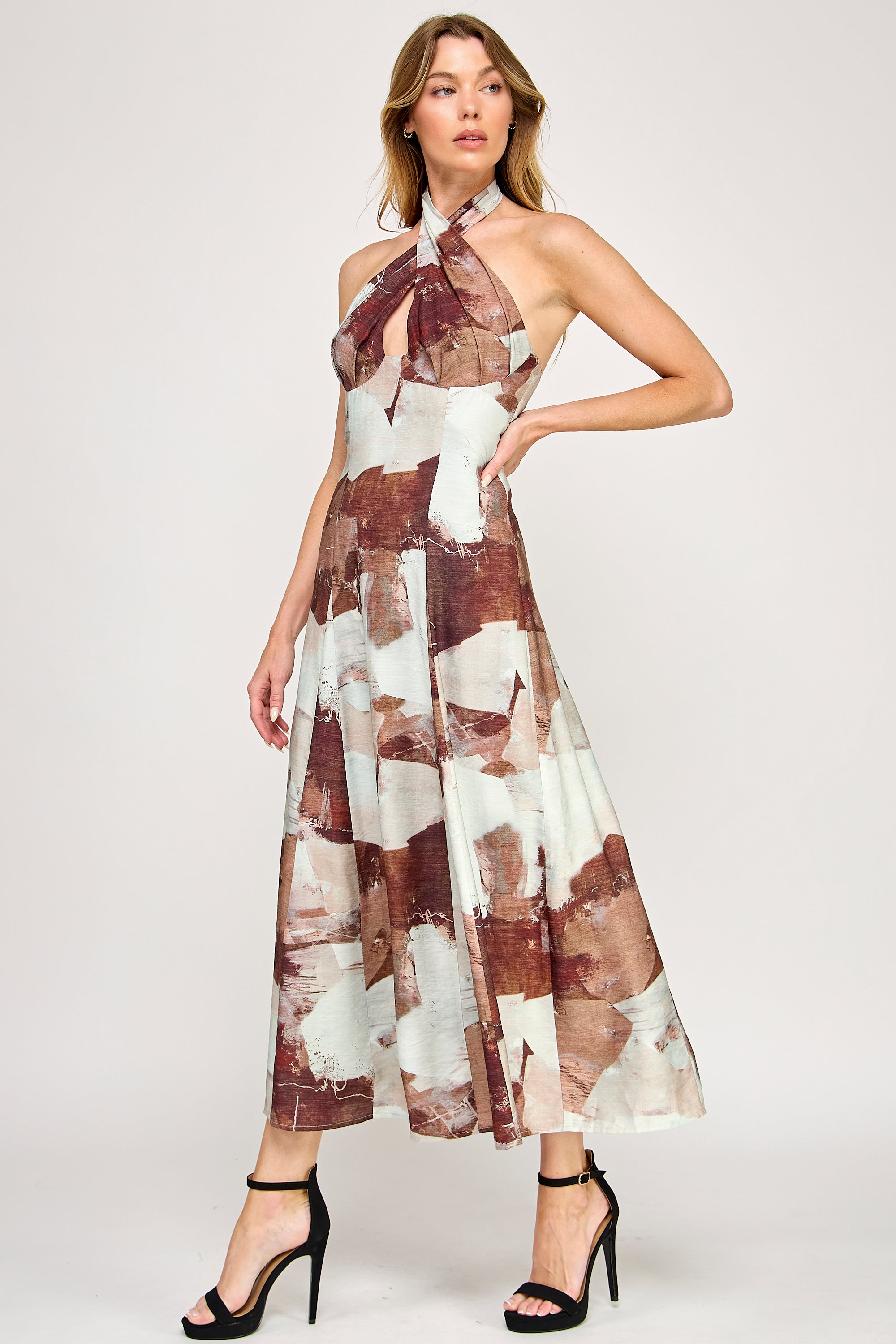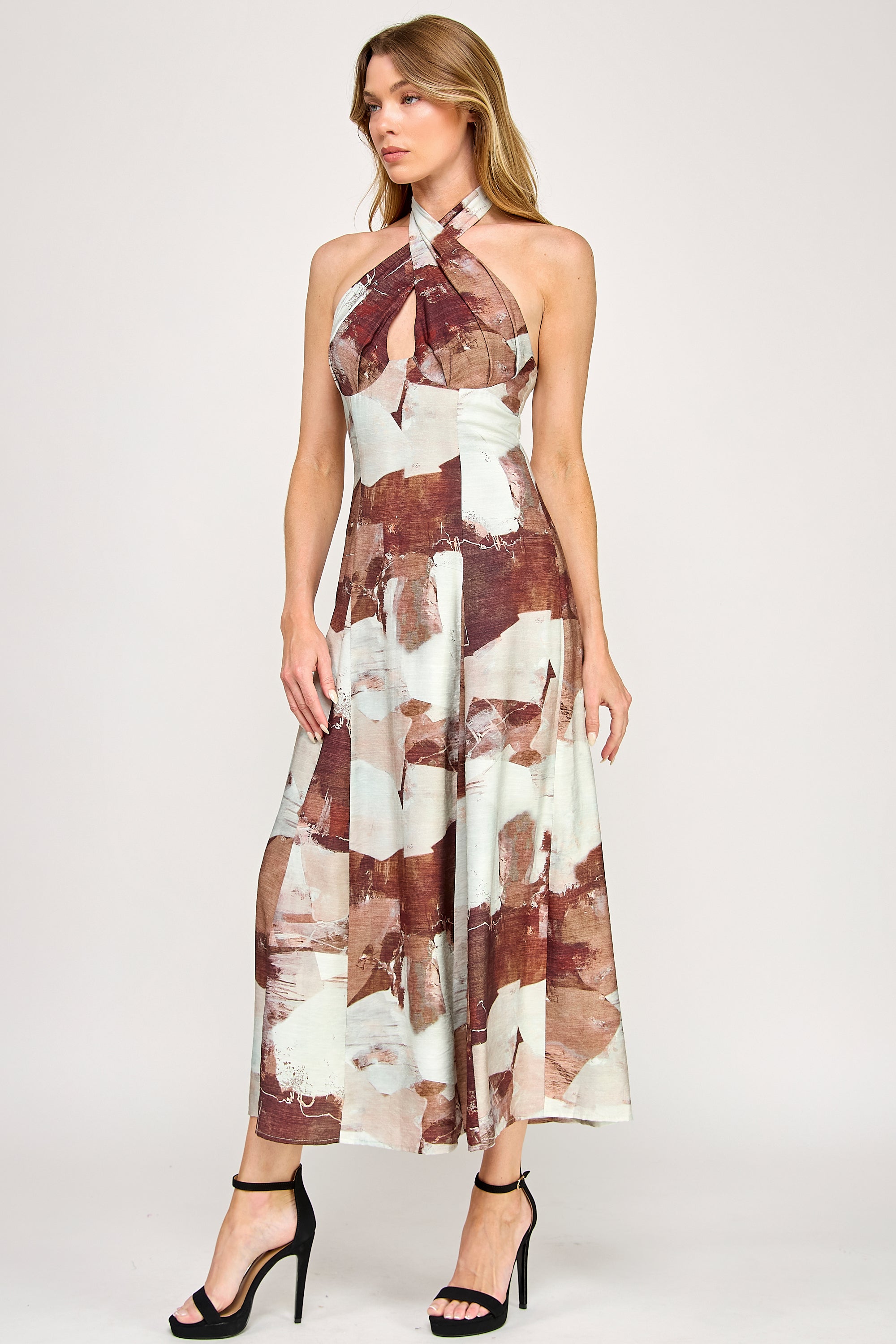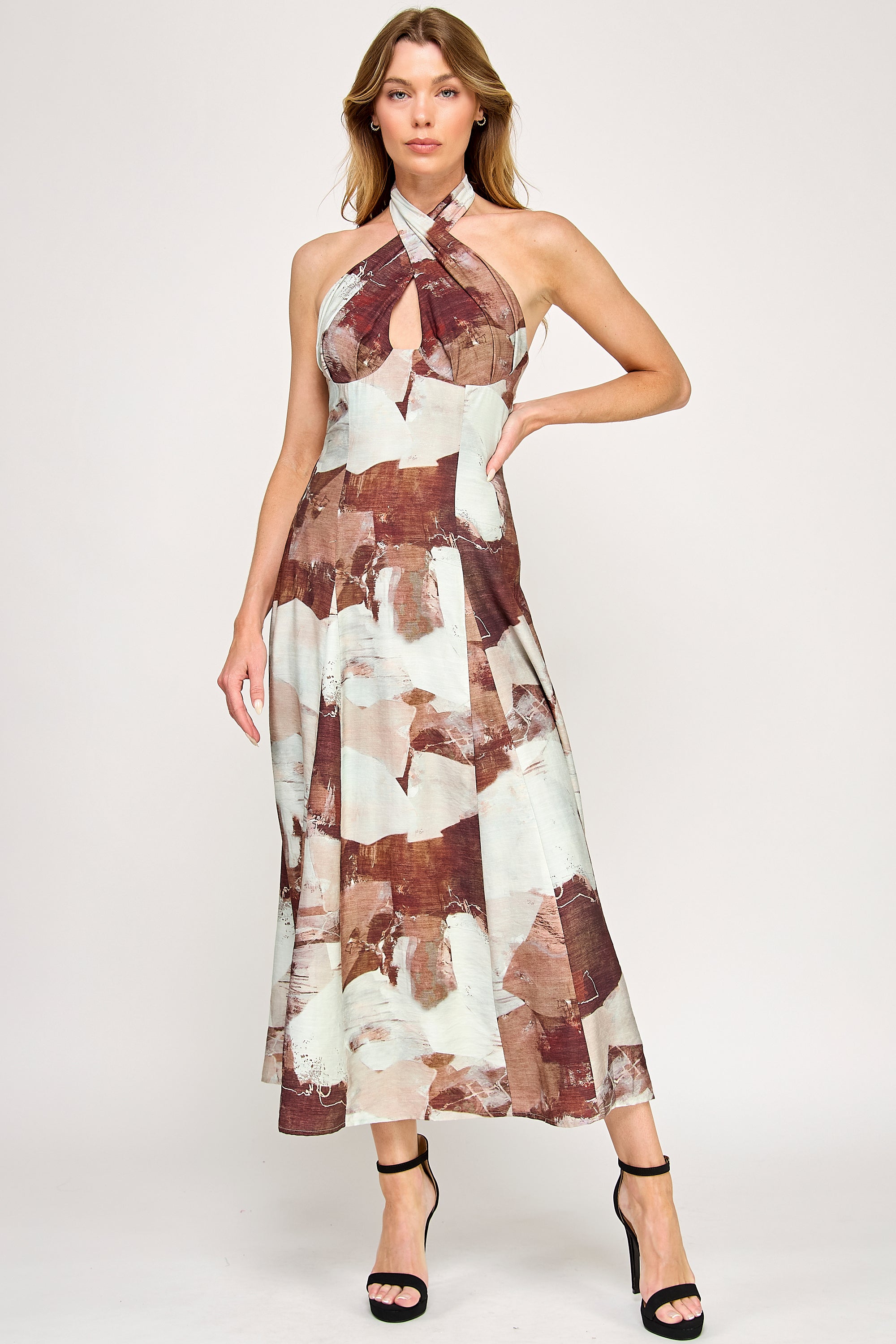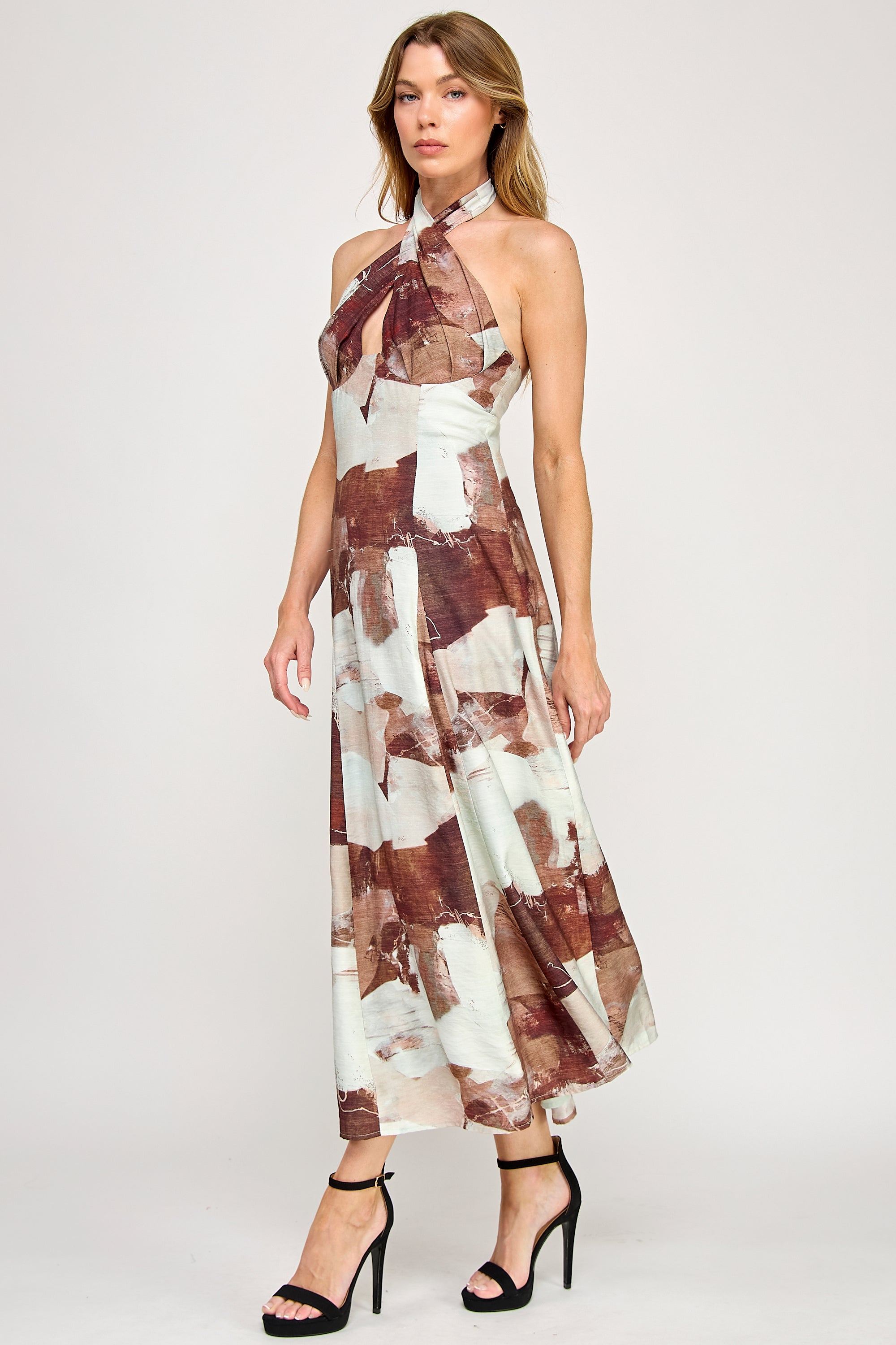 • Halter maxi dress with crossover bust detail