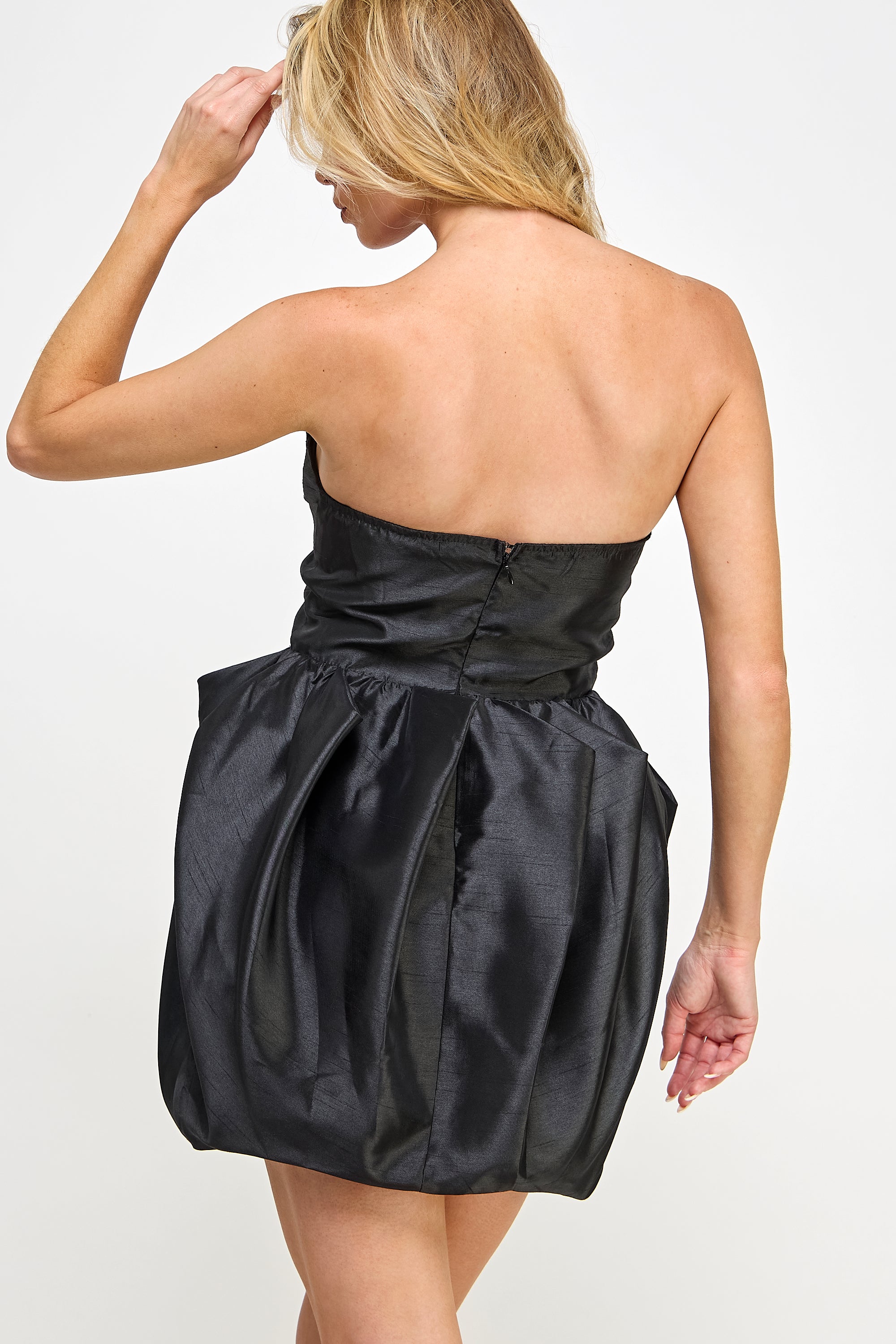 This romantic mini dress features enchanting candlelit cups and delicate ruffles that create an ethereal effect. The puffy silhouette is crafted in luxurious matte fabric, creating a dreamy look with dimensional details that catch the light. The design combines playful volume with sophisticated charm.