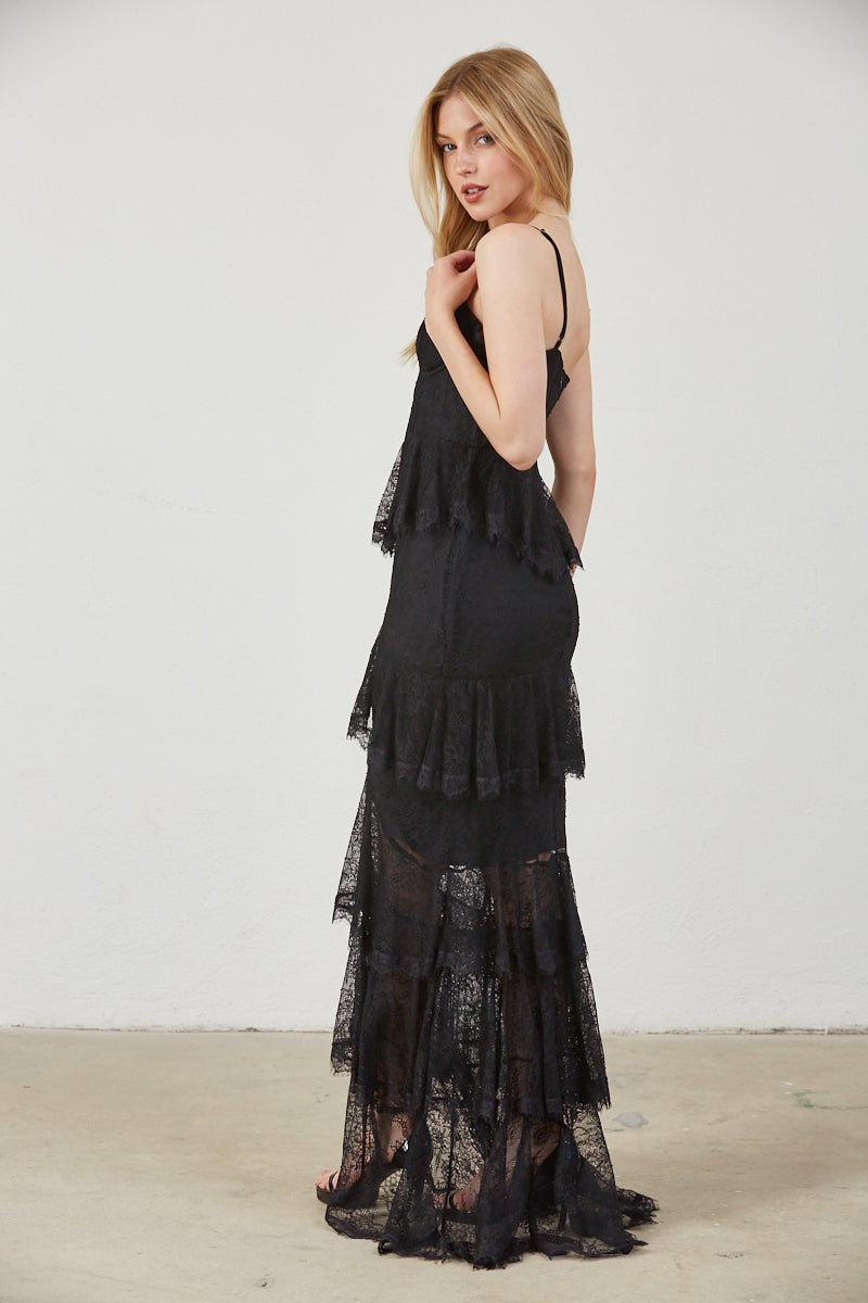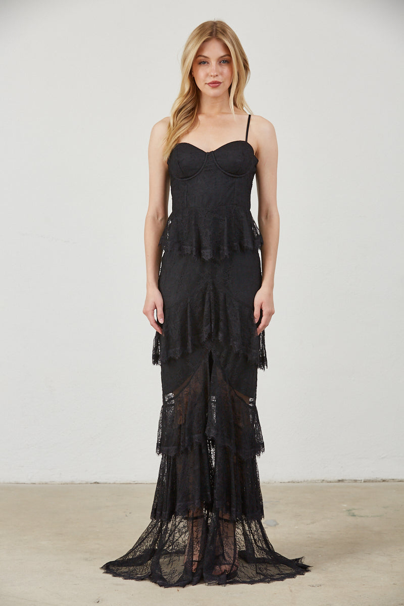 Sheer Corset Tiered Tulle Lace Mini Dress