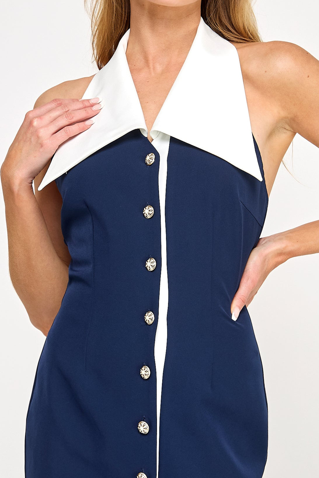• Tuxedo-inspired Halter Neck Mini Dress With Tailored Design