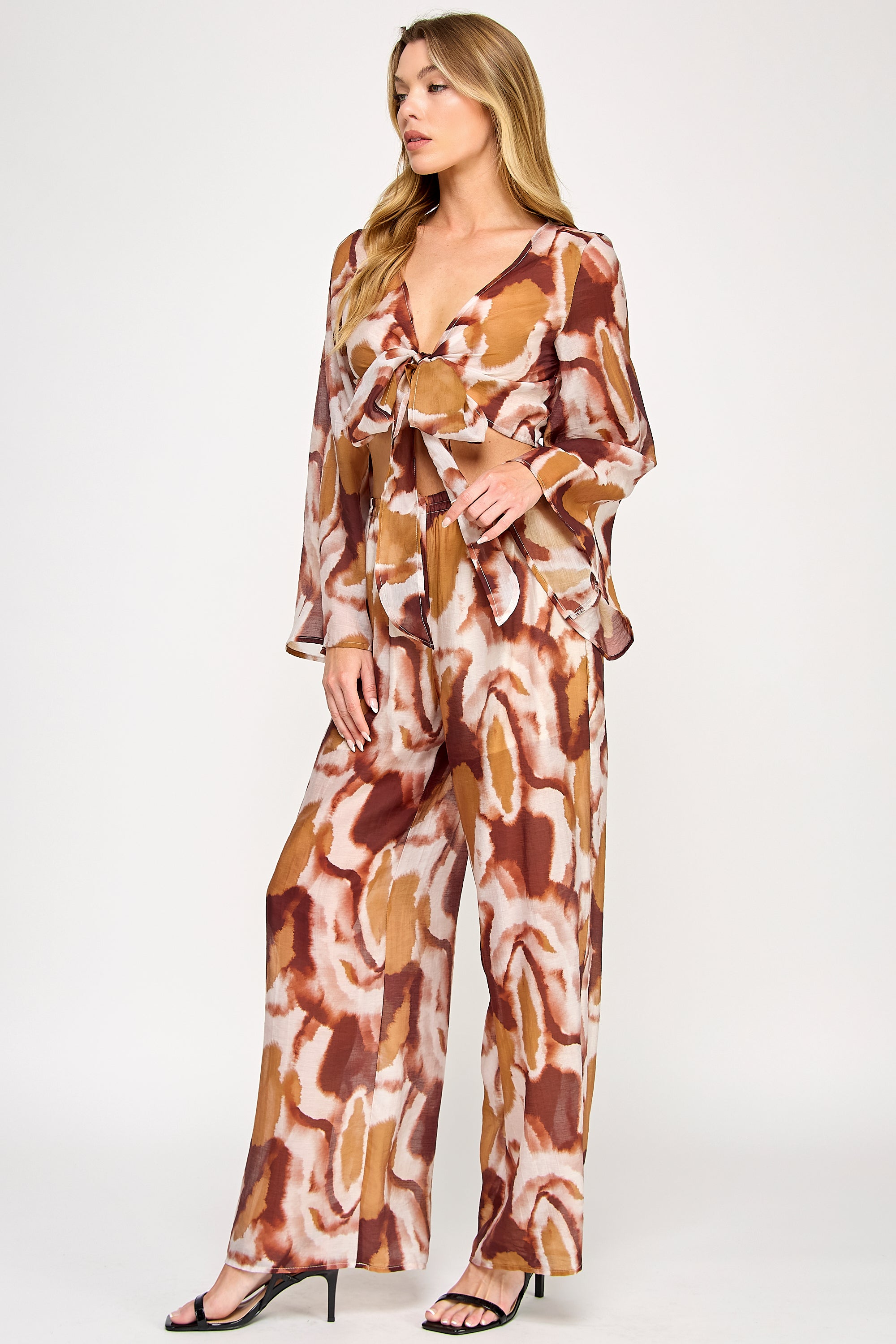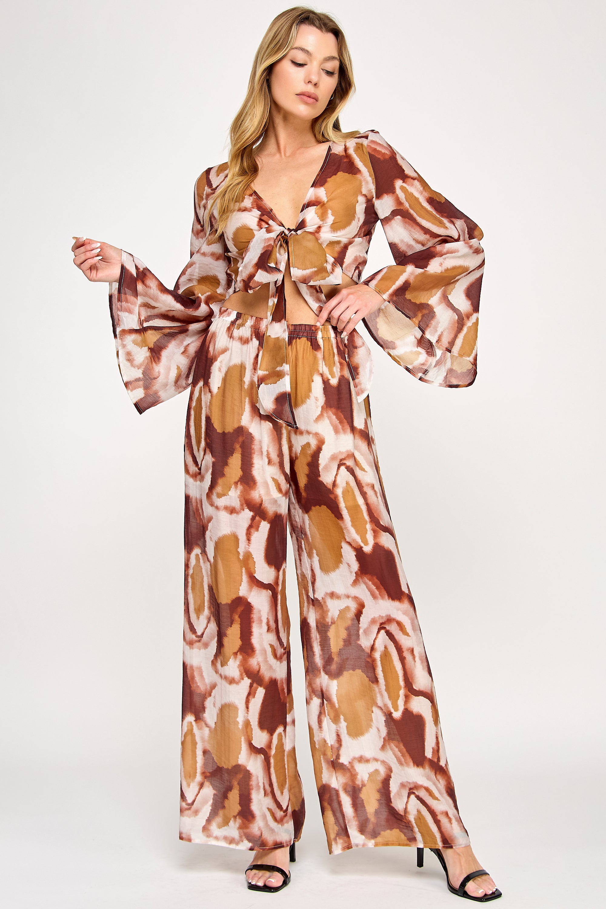 • Front-tie Top With Flowing Bell Sleeves