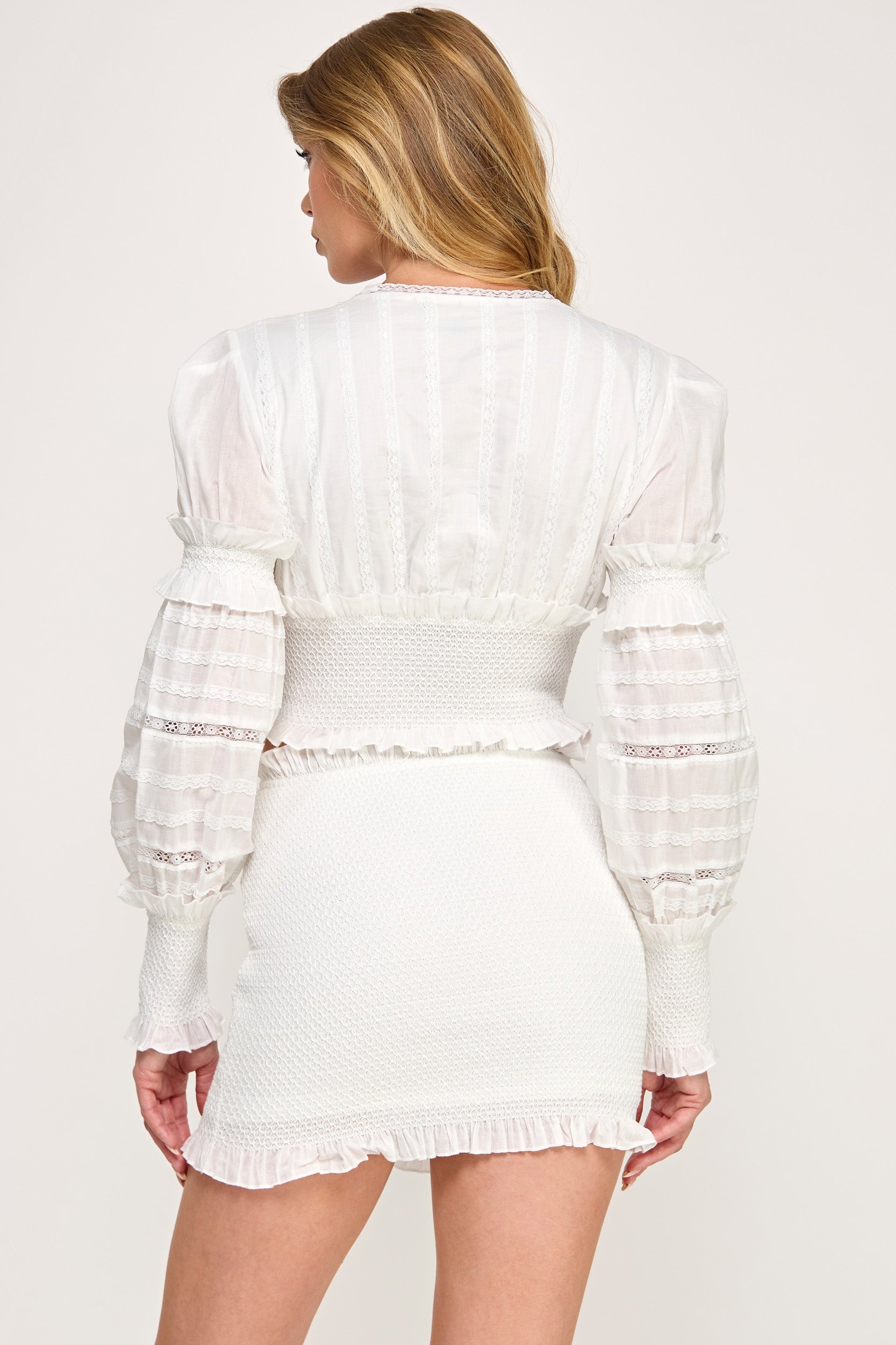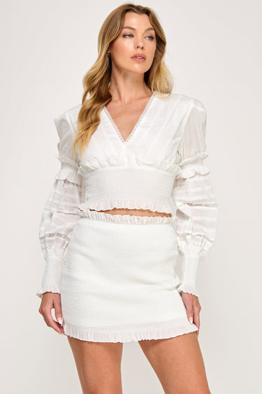 Smock Cotton Sheer Lace Ruffle Mini Skirt Top Set